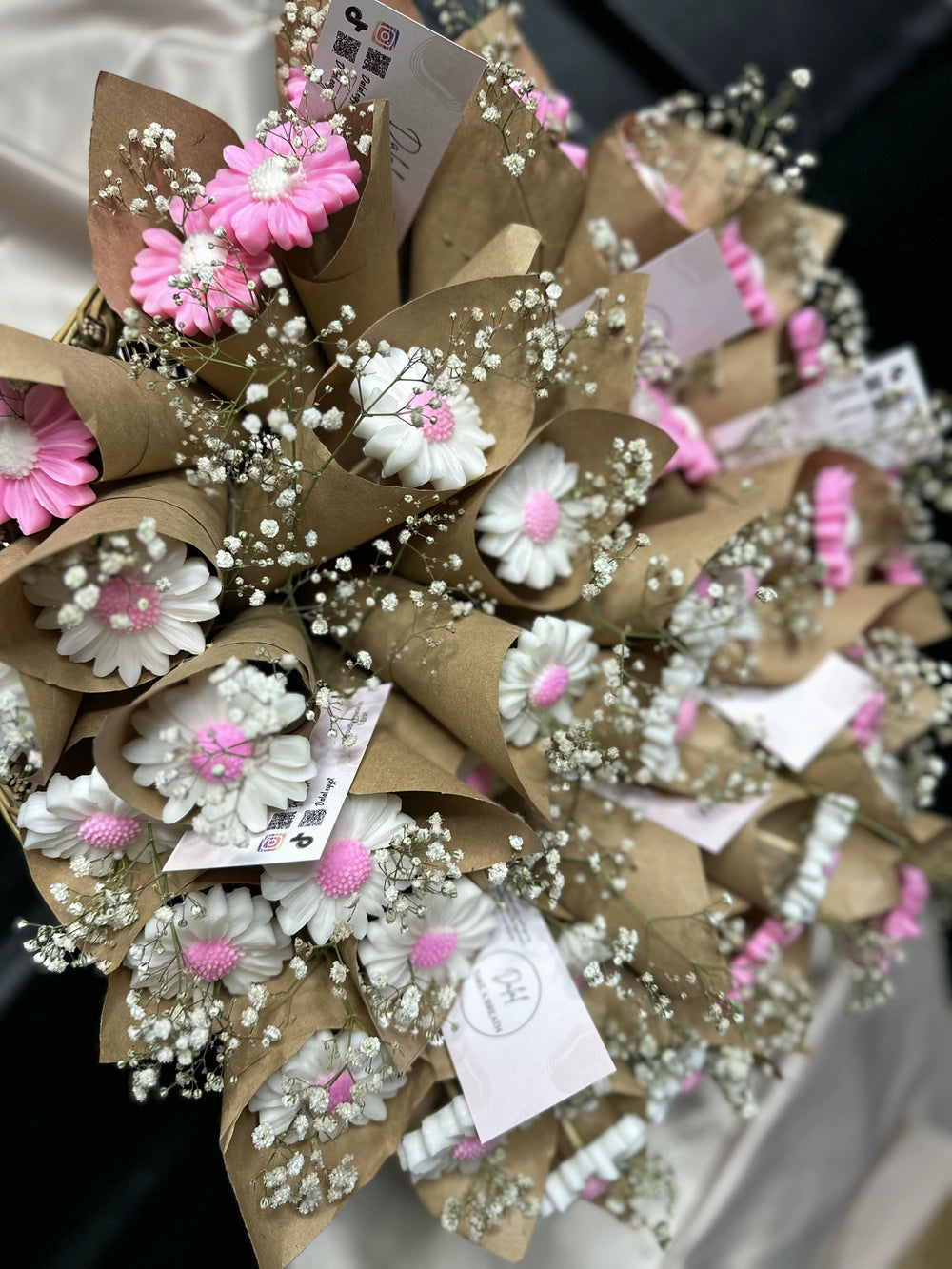 We also customize scented candles, bouquets of 10 to 20 flowers, and different types of party favors such as mini perfumes, home fragrances, or any product from our collection.